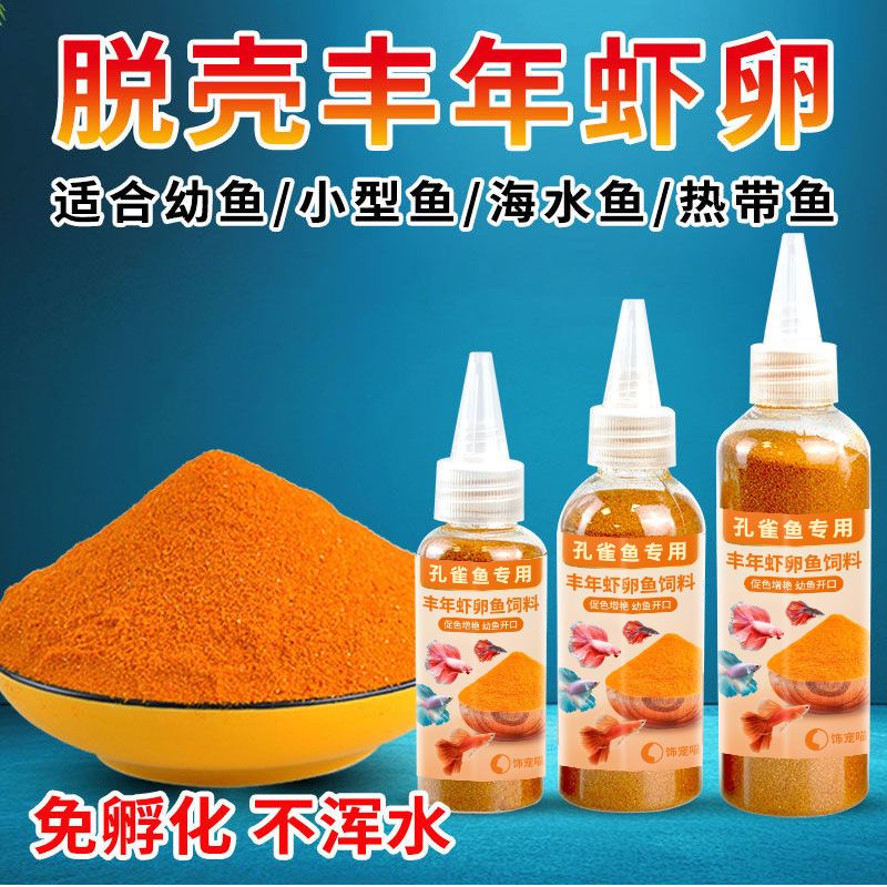 天猫脱壳丰年虾卵孔雀鱼观赏鱼饲料小型热带鱼鱼食幼鱼颗粒开口粮通用
