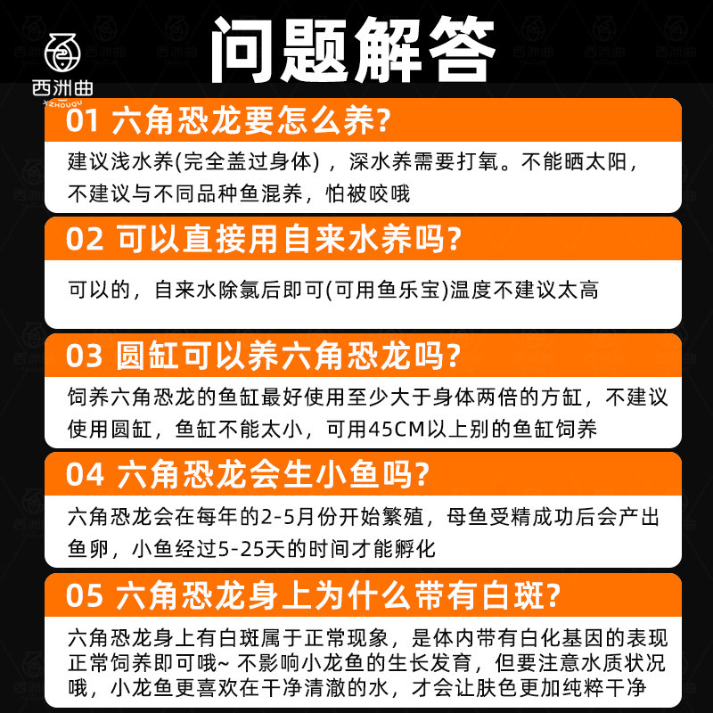 六角恐龙鱼,学名美西螈(Ambystoma mexicanum),是一种原产于墨西哥的淡水蝾螈,因其独特的外形和呆萌的神态深受宠物爱好者喜爱。它拥有六根外鳃,形似“小恐龙”,故得名。作为冷水观赏生物,六角恐龙鱼适应性强,对水质要求不高,适合在15–22℃的淡水中饲养,无需加热棒,日常管理简单,是新手理想的入门宠物。它性情温和,可单独或群养,食性广泛,喜食红虫、虾肉等。寿命可达10–15年,且具备强大的再生能力。虽常被误认为鱼类,实为两栖动物,常与金鱼、锦鲤等冷水鱼混养,增添水族箱趣味,是兼具观赏性与耐活性的优质宠物。