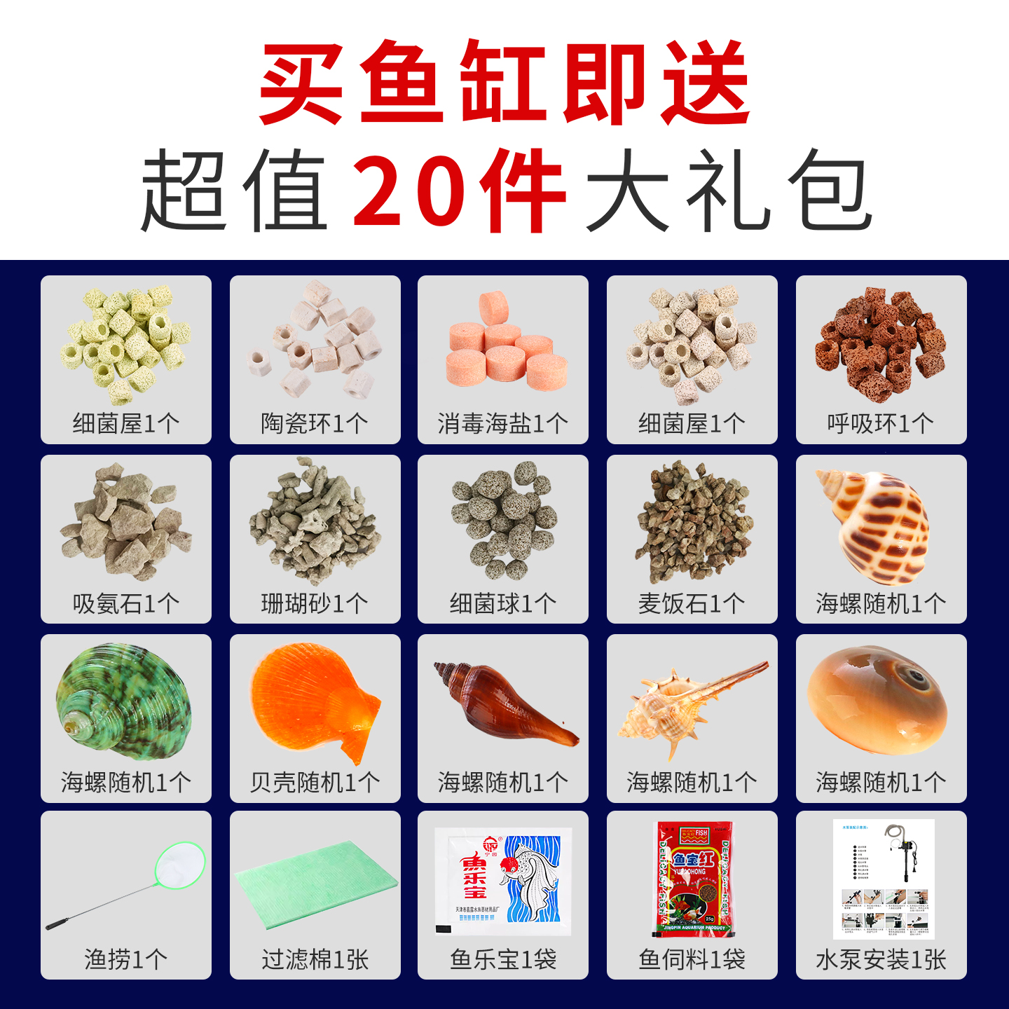 天猫2025新款玻璃金鱼缸过滤制氧一体机小型客厅家用生态自循环水族箱