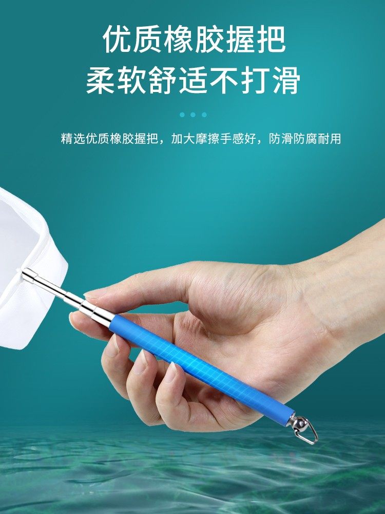 淘新款不锈钢抄网3米抄网竿捞鱼网伸缩杆网抄鱼抄网可折叠抄网头鱼