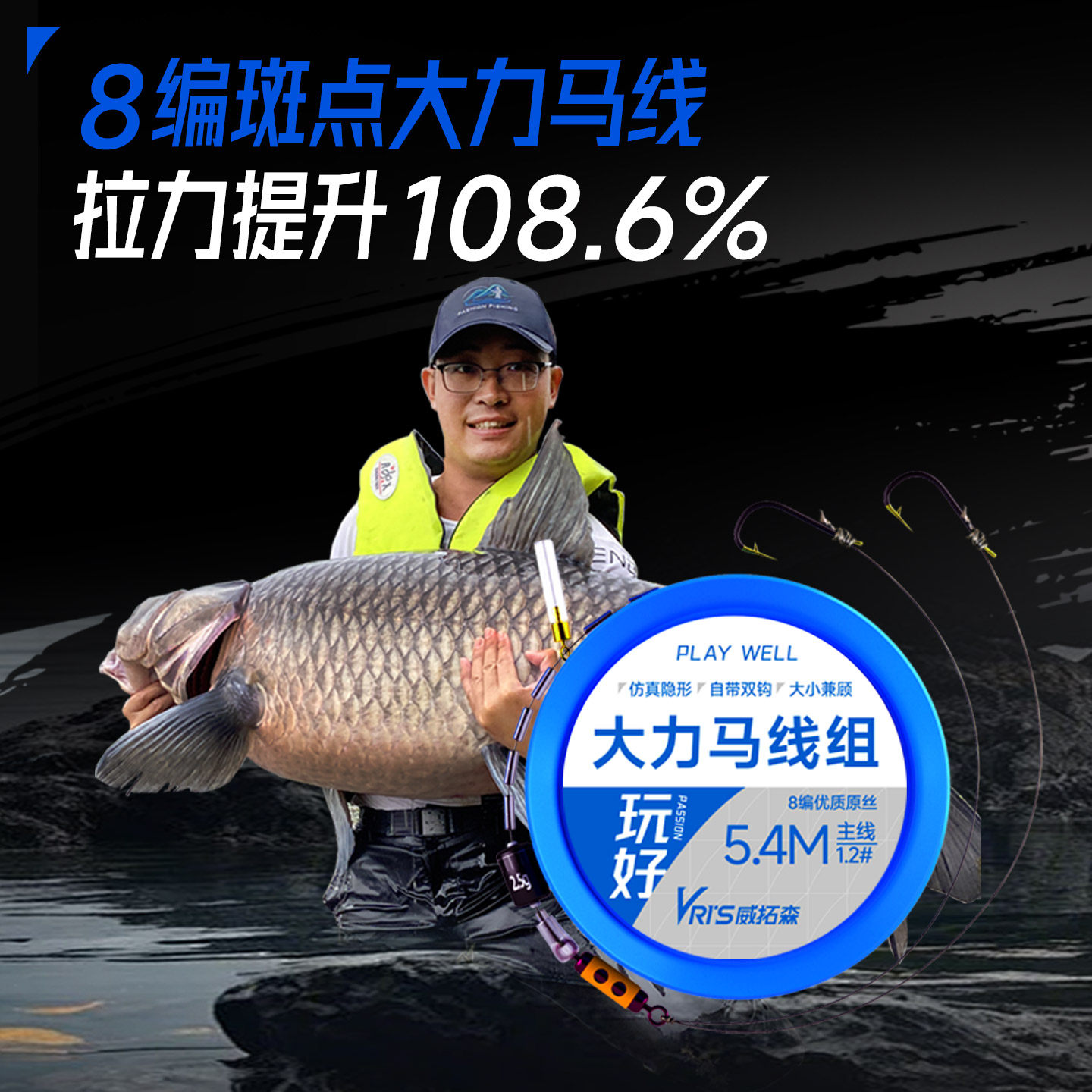 威拓森绑好成品大力马主线线组钓鱼大物鱼线全套,专为垂钓巨物设计,采用高强度大力马编织线,具备超强拉力与耐磨性能,轻松应对青鱼、草鱼、鲢鳙等大型鱼类。线组已预先绑制完成,包含主线、子线、八字环及优质鱼钩,即拆即用,省时省力。鱼钩选用高碳钢材质,锋利耐用,穿透力强,有效提升中鱼率。整套产品经过严格品控,确保正品品质,适合野钓、库钓等多种场景。无论是新手还是资深钓友,都能轻松驾驭,享受搏大鱼的刺激与乐趣。威拓森,专注高品质渔具,助您征战水岸,收获满满。