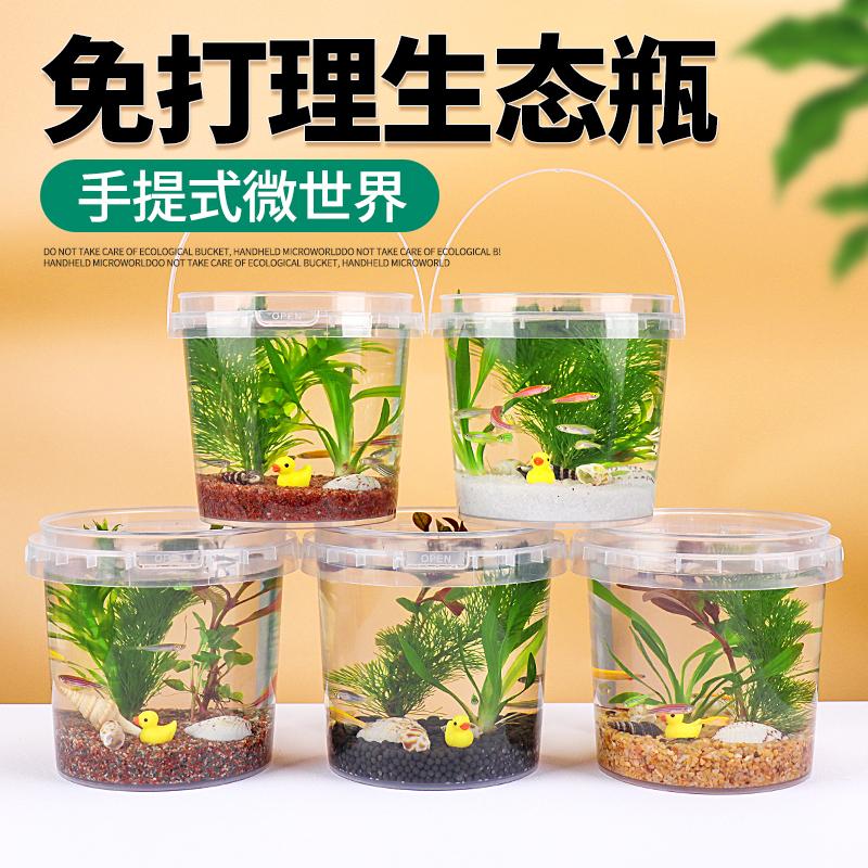 淘宝手提生态瓶DIY活体学校小鱼塑料摆件微景观淡冷水真观赏鱼虾水草