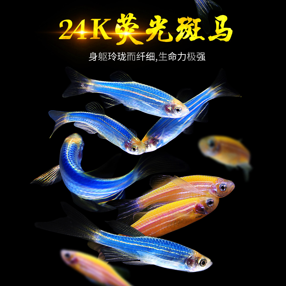 淘宝荧光斑马鱼红蓝带斑马冷水小型热带鱼荧光鳉鱼夜明珠观赏鱼活体