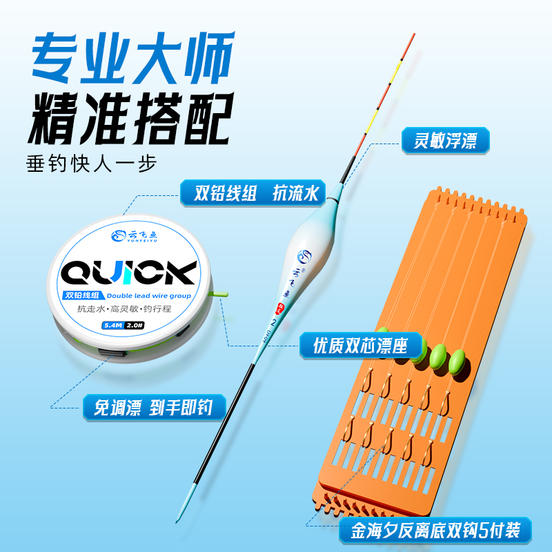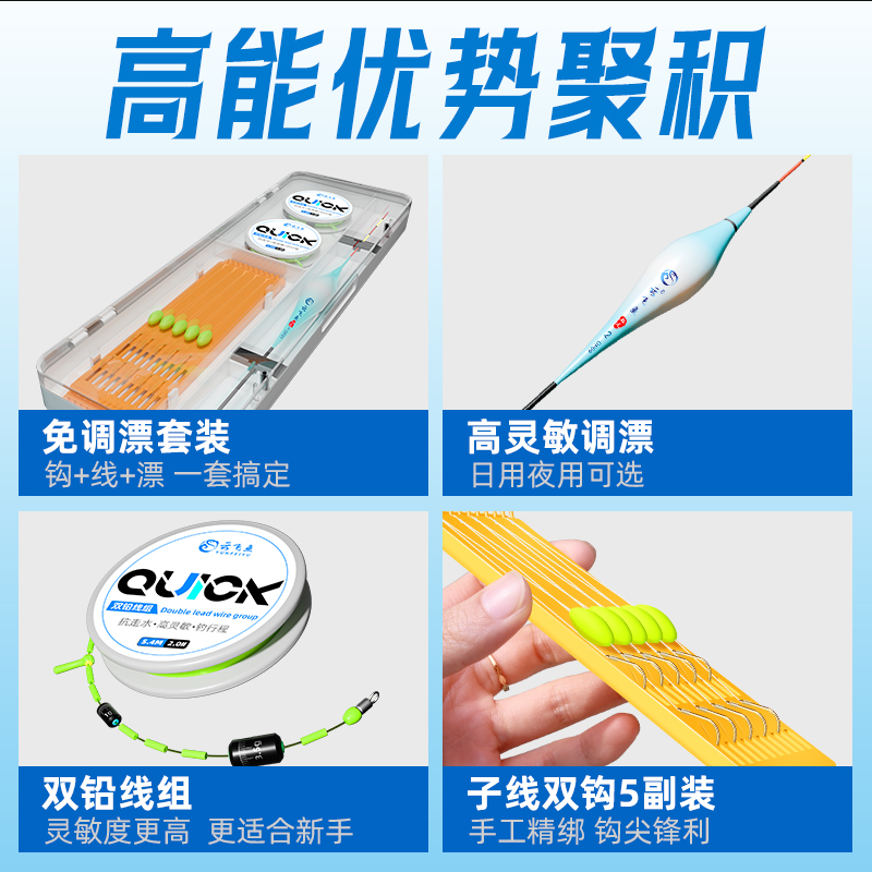 天猫免调漂钓鱼线组全套鱼钩浮漂子线双钩主线组绑好套装台钓高端正品