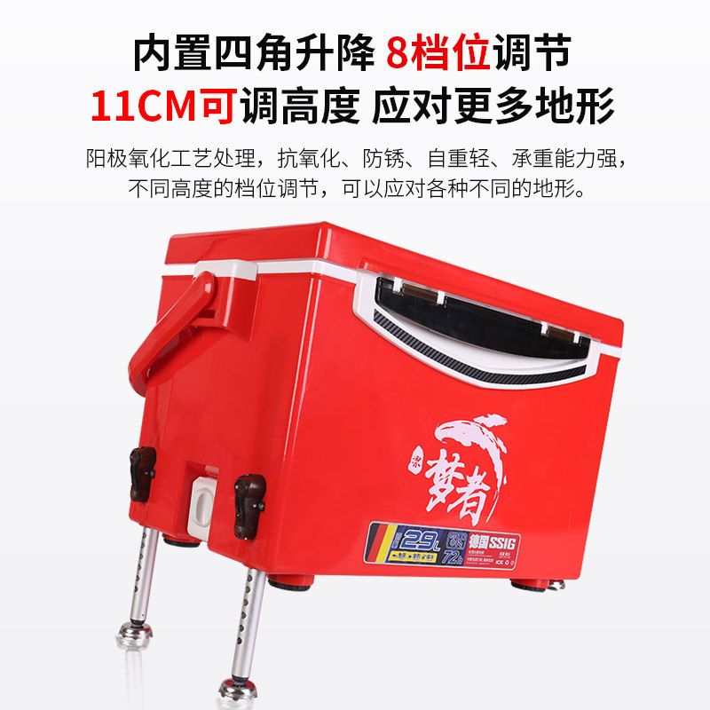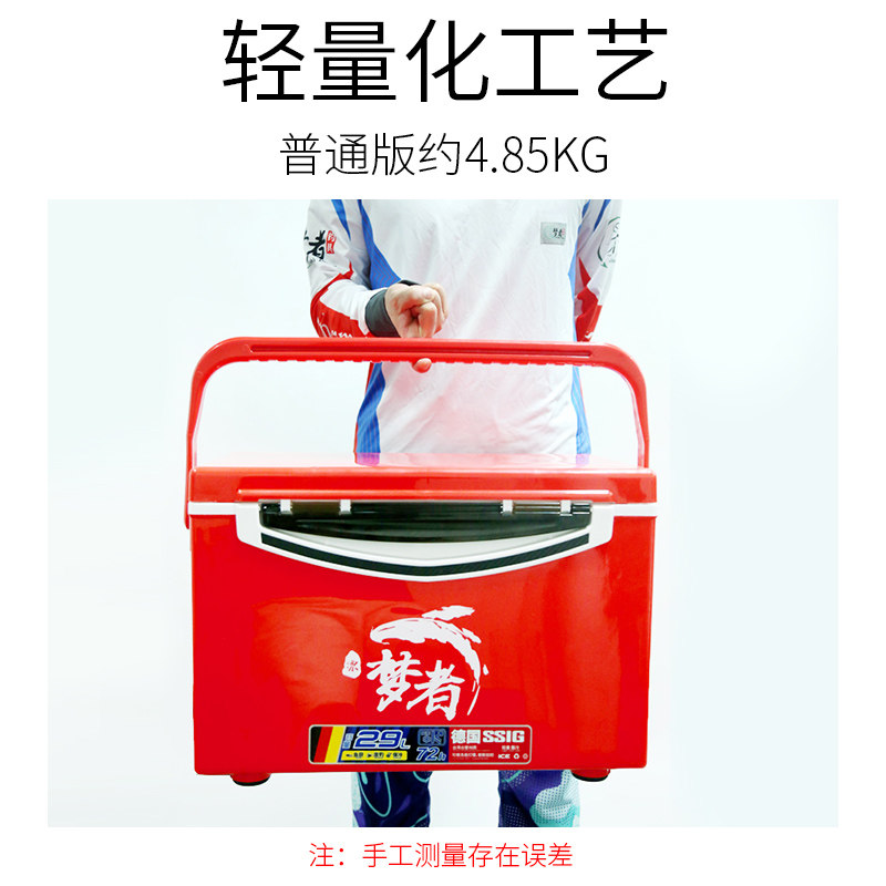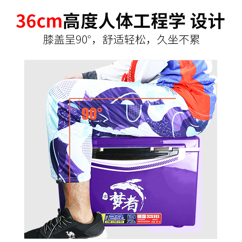 梦者钓箱是一款专为台钓爱好者设计的29升多功能钓箱,采用加厚材质打造,兼具轻量化与高强度,重量更轻却更耐用。双开式设计方便快速取放渔具,内部空间合理分区,可存放鱼饵、配件及冷藏物品,同时具备优异保温性能,有效保鲜鱼获。箱体顶部平整宽大,可稳固坐人,提升垂钓舒适度。配备可调节背带与防滑脚垫,携带便捷且放置稳固。无论是湖边、河畔还是竞技赛场,梦者钓箱都能满足多种垂钓需求,是钓鱼人值得信赖的得力助手。