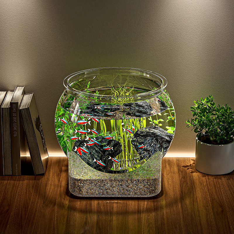 天猫桌面鱼缸生态造景缸客厅小型桌面观赏塑料圆形一体成型仿玻璃防摔