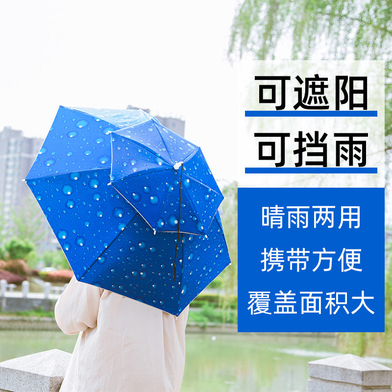 天猫钓鱼遮阳伞头伞雨帽伞帽头戴式雨伞帽防雨头带折叠帽子大号斗笠顶