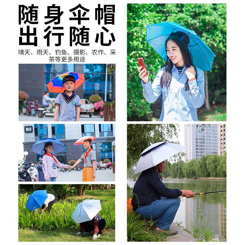 淘伞帽头戴式雨伞便携钓鱼斗笠伞双层防晒折叠头顶雨伞帽户外遮阳伞