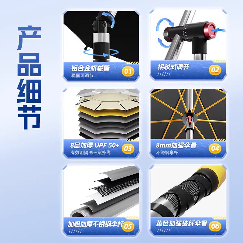 德国2026新款钓鱼伞采用加厚黑胶涂层,具备超强防晒、防紫外线功能,有效抵御烈日暴晒。创新拐杖式设计,集遮阳伞与支撑拐杖于一体,稳固耐用,适合长时间垂钓使用。伞面宽大,覆盖面积广,为钓箱及钓者提供全面遮阳保护。伞骨采用高强度铝合金材质,轻盈抗风,折叠后小巧便携,轻松收纳。专为户外垂钓场景优化,兼顾实用性与舒适性,是钓友户外作钓的理想伴侣。无论是湖边、河边还是海钓,这款多功能钓伞都能为您带来清凉与便利,提升垂钓体验。