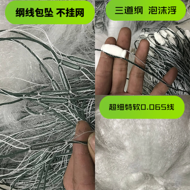 淘鲤鱼三层小鱼渔网捕鱼网粘网沾网丝网鲫鱼网沉网1指到5指1.5米高