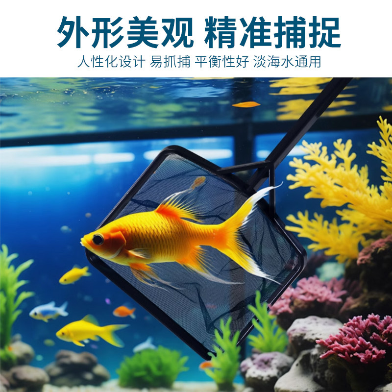 这款鱼缸捞鱼网兜是家用捞鱼的理想选择。采用超细网设计,轻松捕捉金鱼等观赏鱼,不会伤害到鱼身。网兜的小号尺寸设计方便使用,适合捕捞小型鱼类。该捞网制作精细,坚固耐用,可以长时间使用。抄网手柄舒适,易于操作,让你轻松捞鱼。这款鱼网是养鱼爱好者的必备工具,无论是鱼缸清洁还是鱼类捕捉,都能轻松应对。选择这款家用抄网,让你的养鱼体验更加轻松愉快。