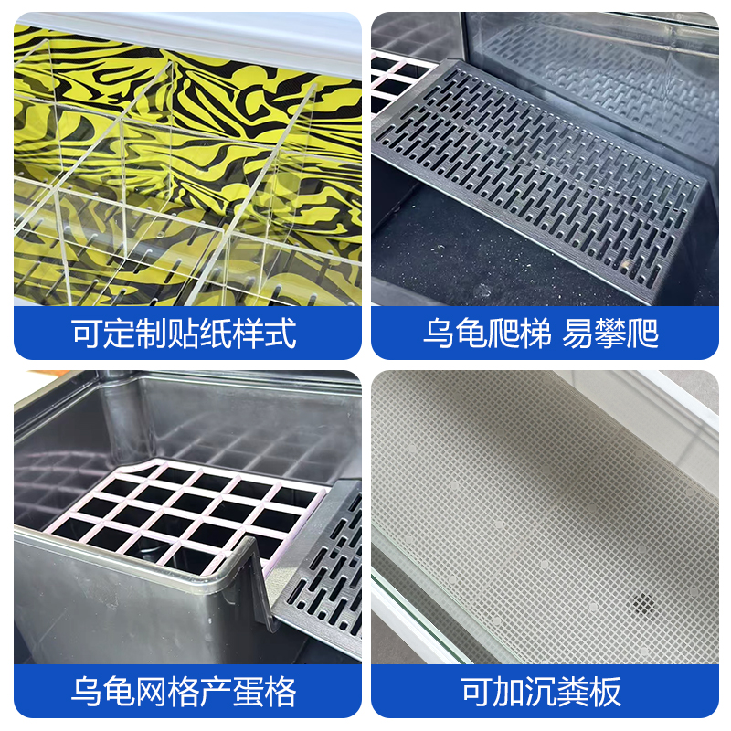 这款大型乌龟缸鱼缸是高品质的高清透明玻璃制作,轻盈耐用,适合养殖各种大小的乌龟和鱼类。缸体设计宽敞,有足够的空间供宠物自由活动,同时提供清晰的视野,方便观察宠物的生活状态。此外,这款养殖箱不仅适合养龟和鱼,也适合作为产蛋箱使用。产品轻便方便搬运和移动,更适合经常周转的需求。作为高质量宠具的选择,它能给您的宠物提供一个舒适、安全的生活环境。这款乌龟缸鱼缸是您理想的宠物饲养工具。