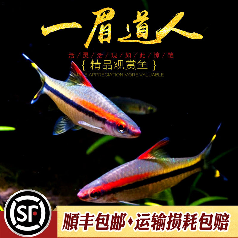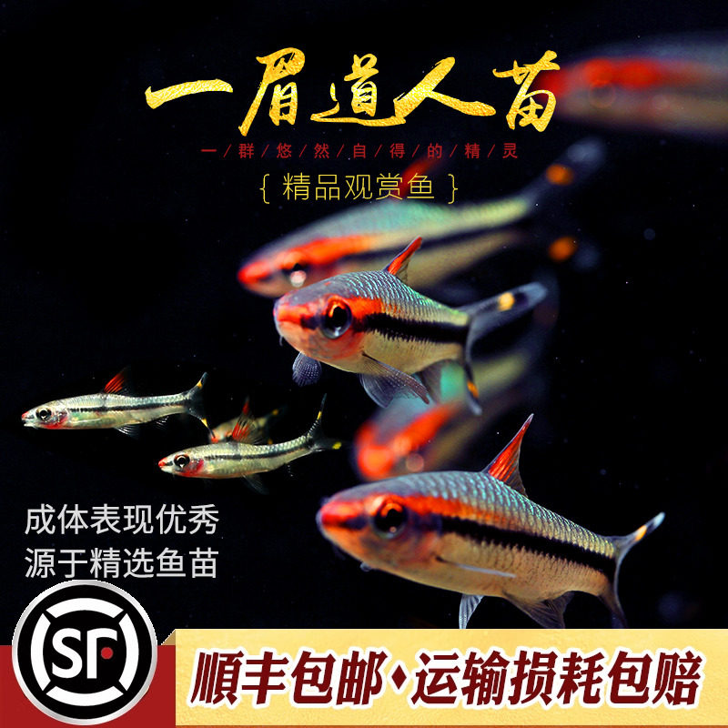 淘宝一眉道人鱼热带鱼观赏鱼水草缸群游王灯鱼红眉彩虹黑影道人活体鱼