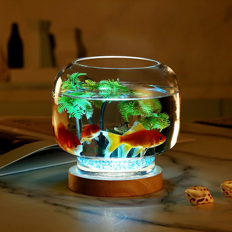 创意圆形玻璃热带小鱼缸是一款集观赏、生态与装饰于一体的鱼缸。其采用优质玻璃材料,透明度高,全景展示水中世界。独特的圆形设计,搭配精美假山和桌面灯光,营造出温馨舒适的氛围。缸内热带小鱼生动游弋,带来自然生态的观赏体验。同时,该鱼缸寓意招财,是家居装饰的不错选择。它的美观与实用并重,是您品味生活的体现。