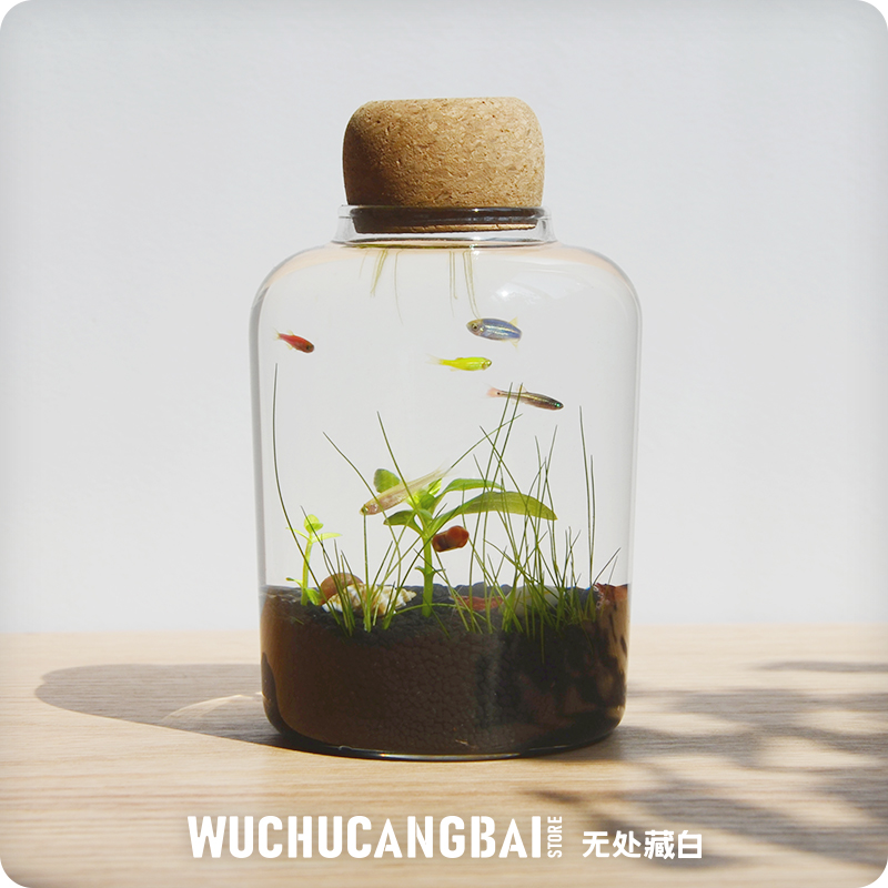 淘观赏生态瓶鱼微景观免换水免打理diy水族办公桌面创意造景鱼缸