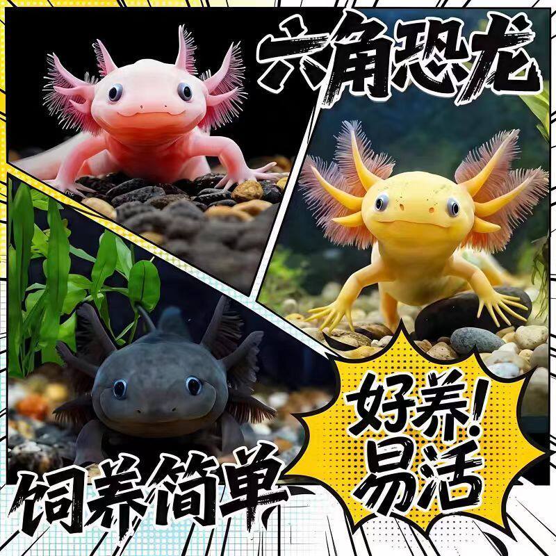 淘宝六角恐龙鱼蝾螈活体淡水宠物观赏冷水鱼好养耐活无需打氧