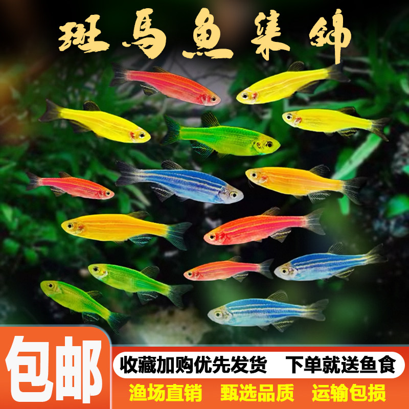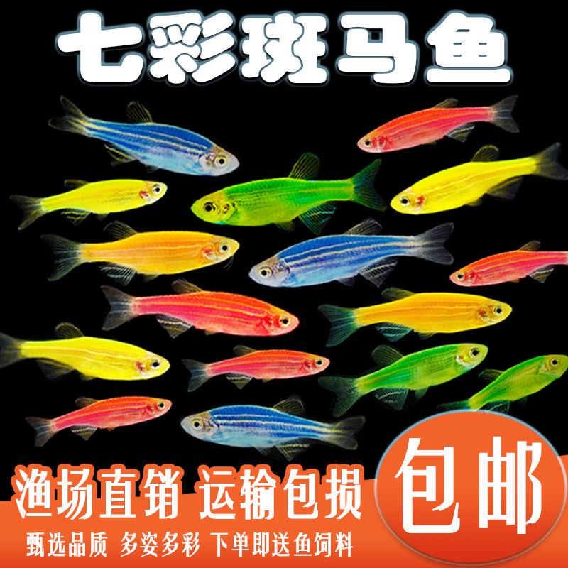 淘宝热带观赏鱼斑马鱼七彩斑马好养耐活小型冷水淡水群游多彩灯科小鱼