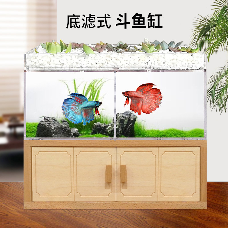 淘宝桌面迷你底滤微缸饲养小型热带鱼观赏水晶虾灯科斑马孔雀青鳉斗鱼