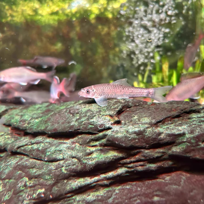 双吸盘冷水观赏鱼,又称清道夫鱼或墨头鱼,是专为冷水鱼缸设计的优质除藻工具鱼。其体型小巧,适应性强,可在10–25℃的水温中健康生活,无需加热设备。该鱼拥有强大的吸盘状口器,能高效清理缸壁、沉木及过滤器上的藻类,尤其擅长清除绿斑藻和褐藻,有效保持水质清澈。性格温和,不攻击其他鱼类,适合与金鱼、锦鲤等冷水鱼混养。因其出色的清洁能力和观赏价值,成为生态鱼缸的理想选择。定期投喂少量藻片或蔬菜,可进一步提升其除藻效果,是维护鱼缸洁净的得力助手。