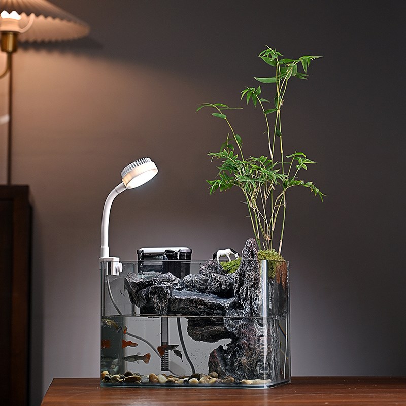 淘宝中国风桌面微景缸懒人生态鱼缸小型家用客厅观赏自循环办公室摆件
