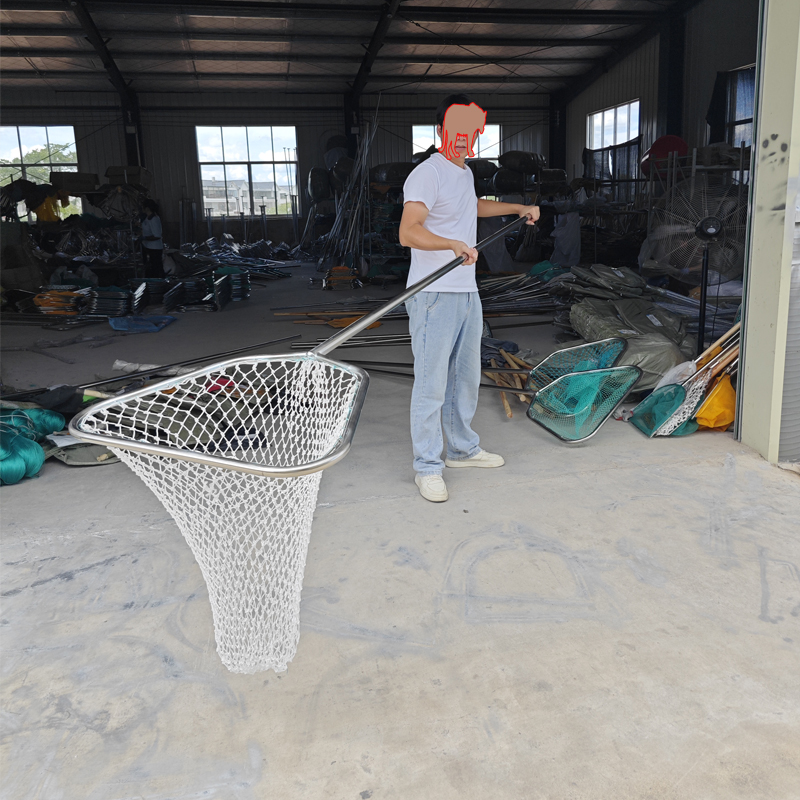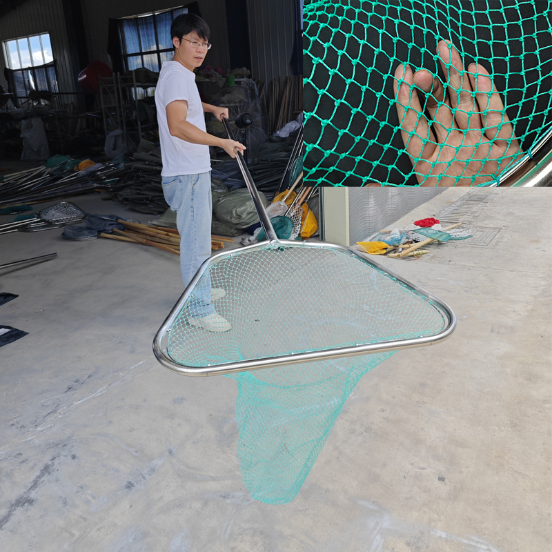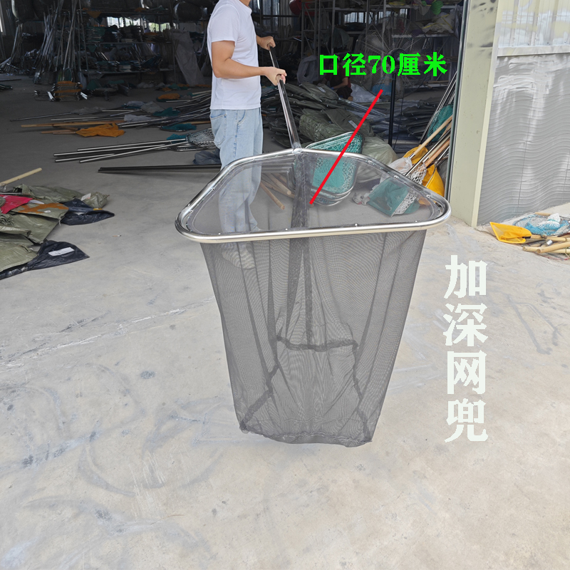 淘可折叠加厚不锈钢一体实心抄网头可伸缩抄鱼网巨物抄网三角网头