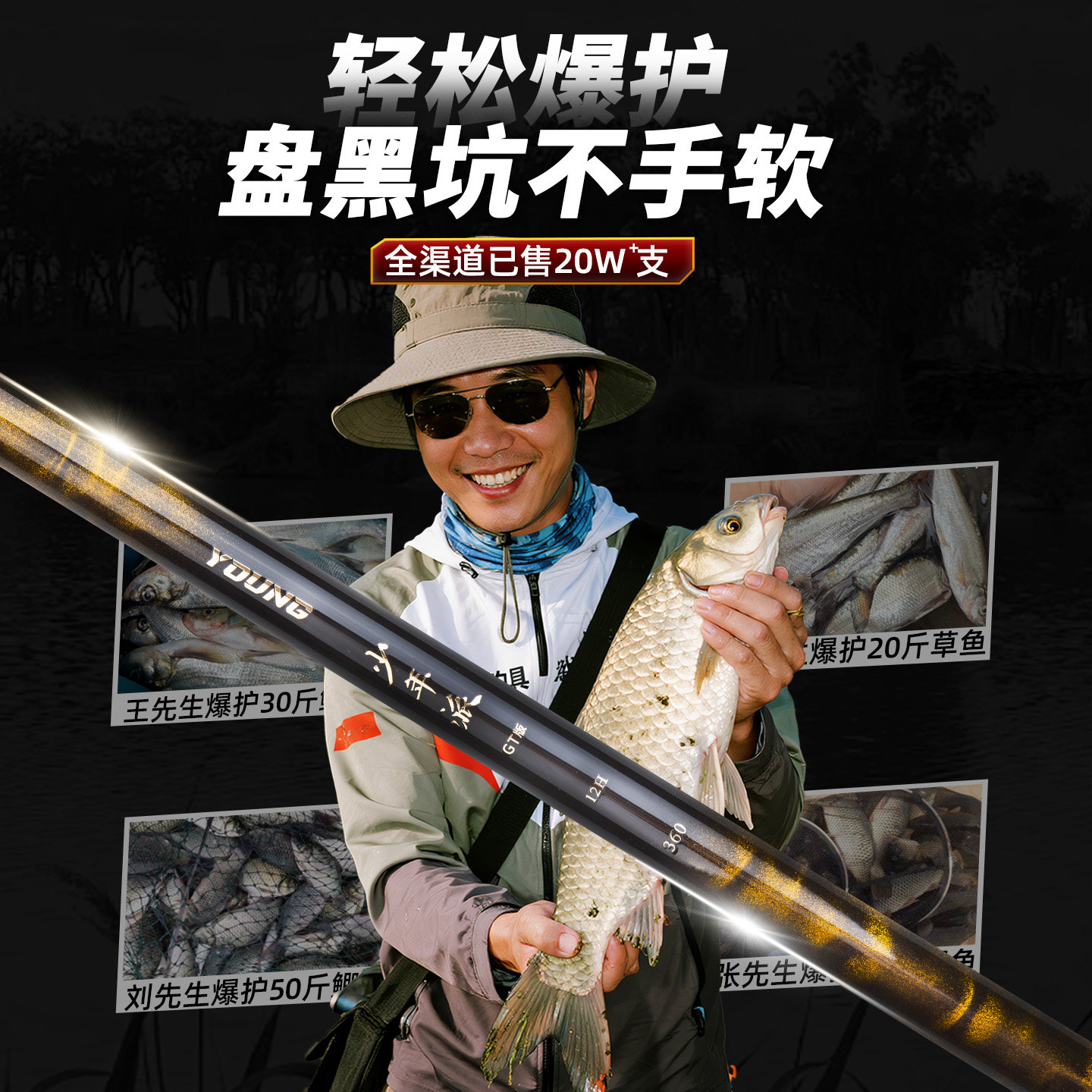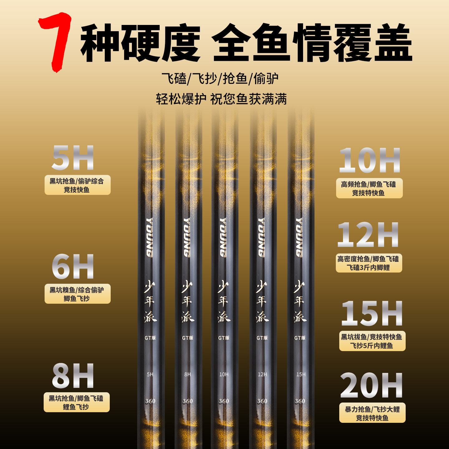 天猫皇禾少年派GT黑坑专用钓鱼竿超轻超硬手竿6h8h10h罗非竿飞磕杆竿