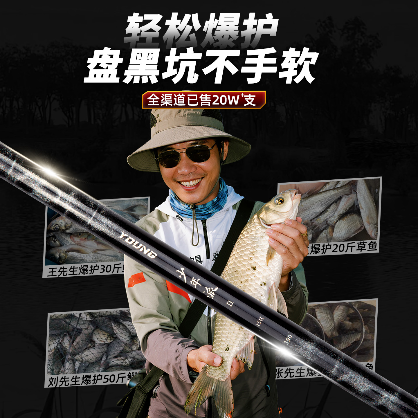 天猫皇禾少年派2代黑坑专用钓鱼竿超轻超硬手竿6h8h20h罗非竿飞磕杆