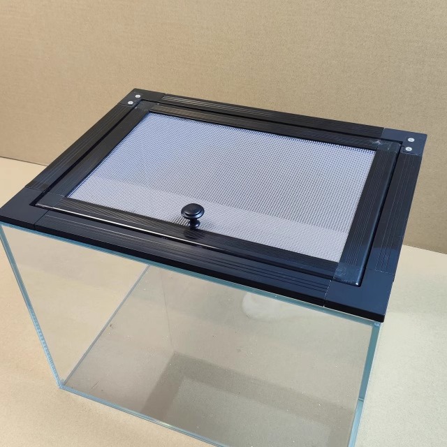淘宝观赏鱼防跳鱼缸上盖翻盖式包边盖板金钢网透气透光 /铝塑板不透光