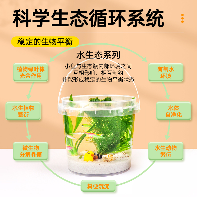 手提生态瓶观赏鱼DIY鱼缸是一款专为喜爱观赏鱼的人士设计的微景观鱼缸。这款鱼缸采用淡冷水养殖,适合各种鱼虾生存。其特色在于真实的水草和免打理设计,为您节省大量时间和精力。手提式设计方便您随时携带,无论在家还是户外,都能欣赏到美丽的鱼景。同时,生态瓶为您的观赏鱼提供一个健康的生态环境,让您的爱鱼生活在舒适、自然的环境中。DIY功能更是满足个性化需求,为您的家居增添一份独特的艺术气息。