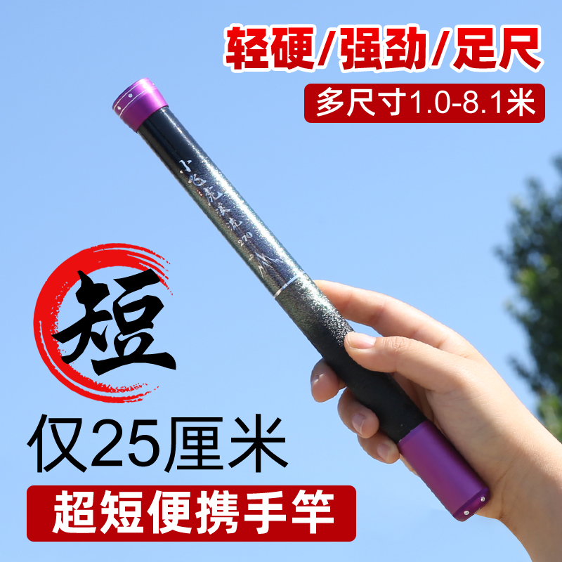 天超短手竿便携钓鱼竿碳素超轻超硬19调短节手杆溪流竿竹子袖珍迷你