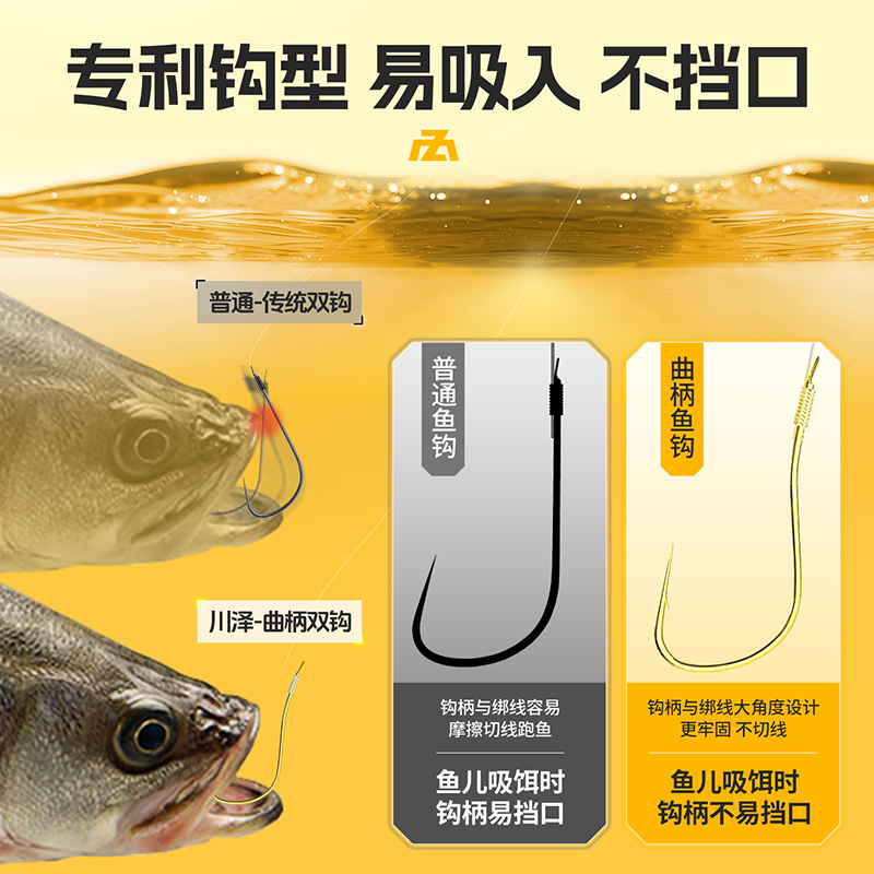 天猫川泽曲柄金袖鱼钩子线双钩有刺无刺鲫鲤进口鱼线绑好专用钓鱼钩