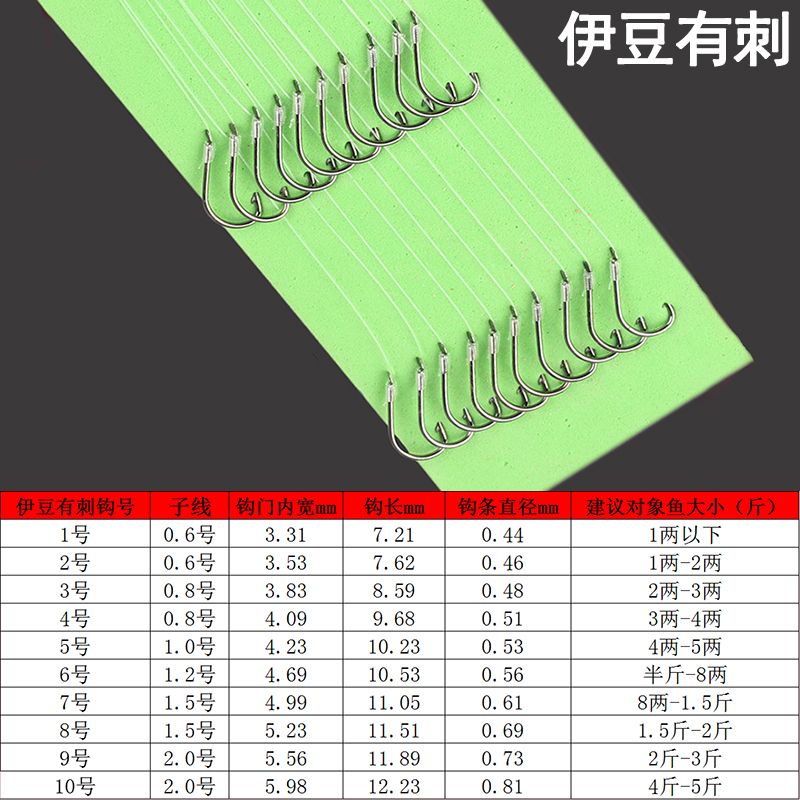 天伊豆鱼钩散装有倒刺歪嘴潮钩鲫鱼钩鲤鱼钓鱼钩正品伊势尼