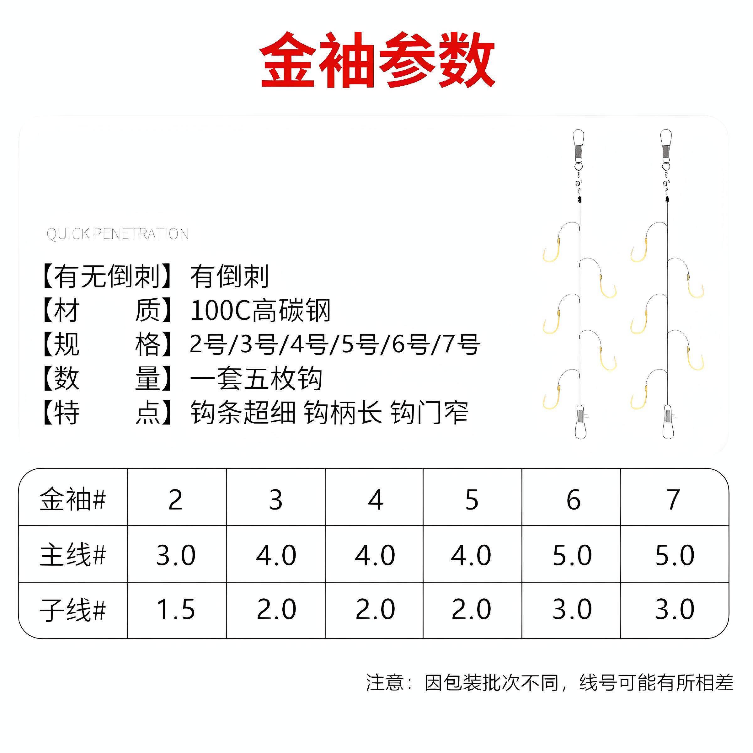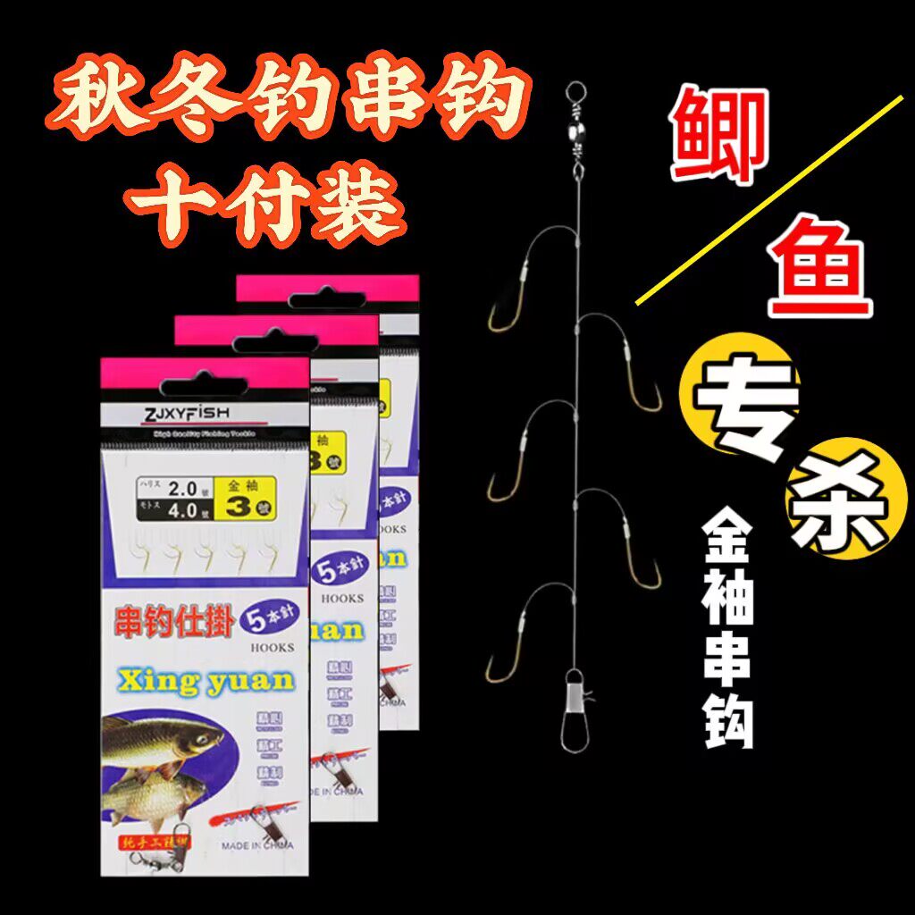 淘宝野钓金袖5钩防缠抛竿新款串钩白条鲫鱼串钩线组昂刺黄辣丁马口