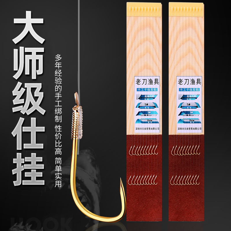 淘子线双钩金袖鱼钩金海夕平打秀钩绑好盒装套装钓鱼成品鱼具用品