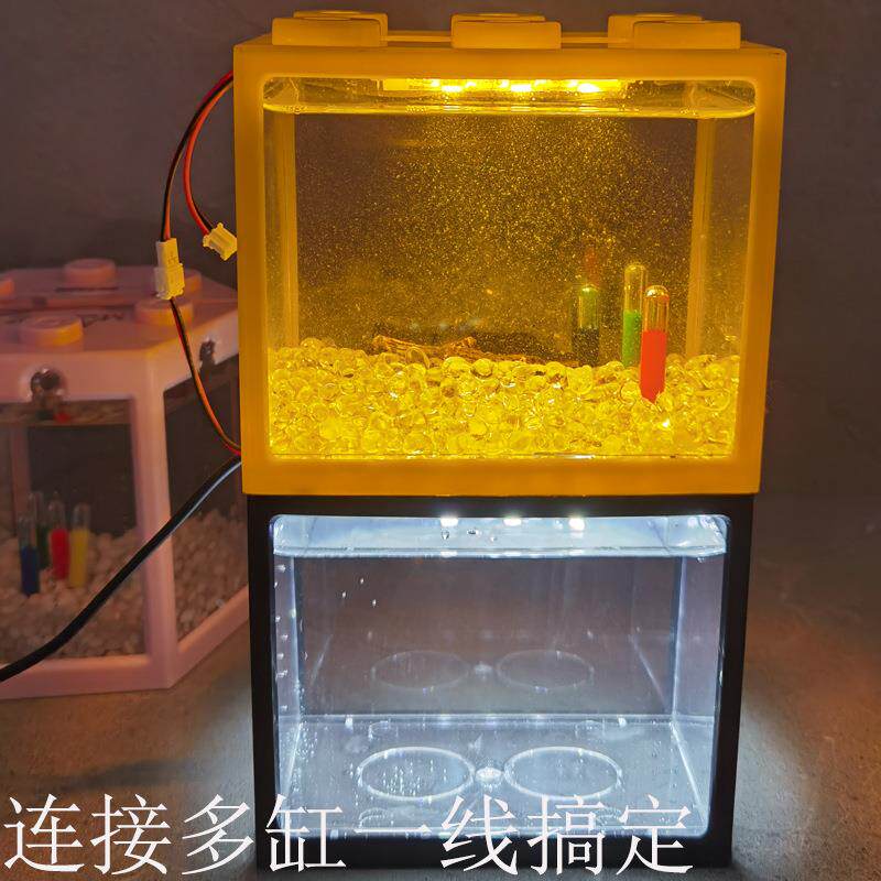 天猫桌面高透明串线连接带灯USB灯多缸串联斗鱼缸小型观赏盒排缸叠加