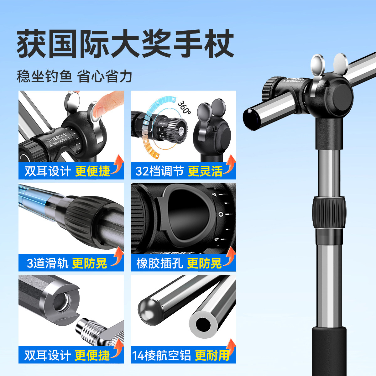 淘钓鱼伞下杆拐杖头万向杆手杖杆铝合金万向钓伞拐杖地插加强不锈钢