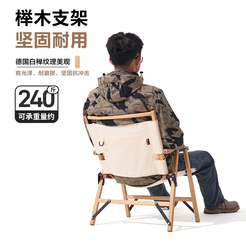 天猫牧高笛露营户外实木折叠椅便携式沙滩椅钓鱼凳子美术克米特椅云逸