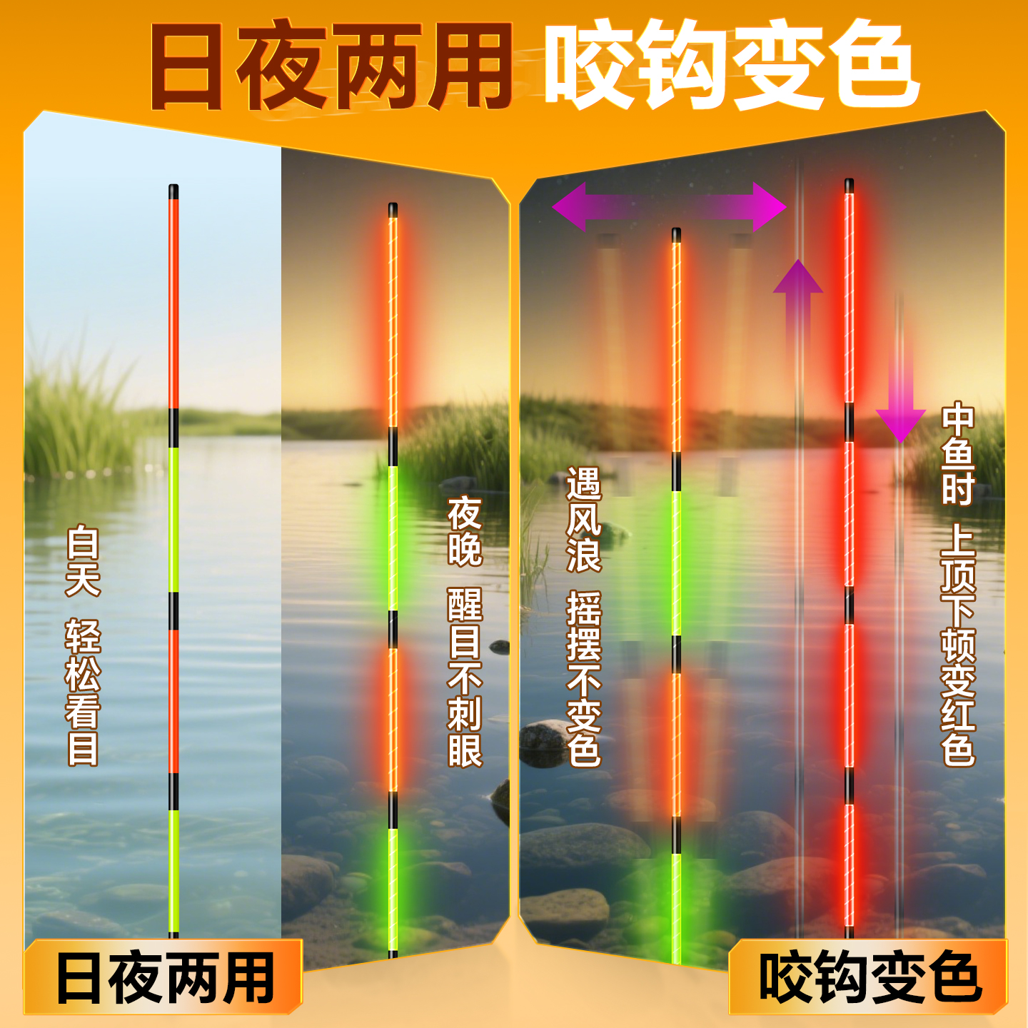 加粗醒目电子漂咬钩变色夜光漂日夜两用浮漂高灵敏夜钓鱼漂电池