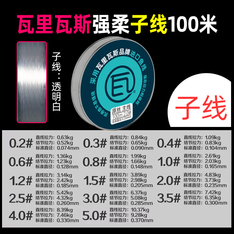 天猫瓦里瓦斯鱼线100m强柔进口钓线强力野钓黑坑子线进口尼龙线钓鱼线