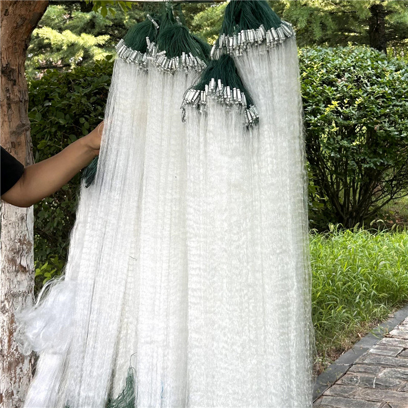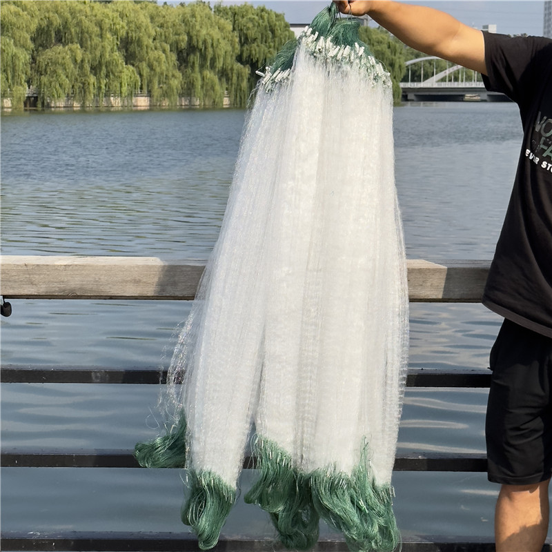 进口渔网粘网三层沉网鱼网绳包坠不缠网加重加粗绿丝网5指100米长
