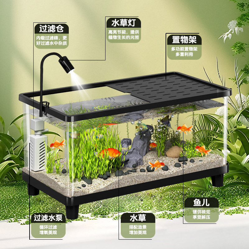 天森森鱼缸客厅2025新款免换水自循环生态智能超白玻璃小型桌面鱼缸