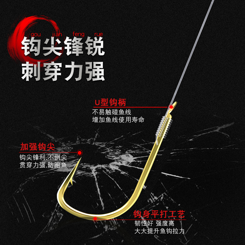 天川泽天青烟雨24K真金袖鱼钩子线双钩成品鲫鱼专用抗腐蚀钓鱼钩子