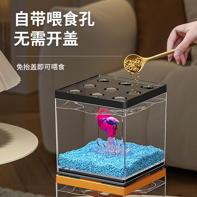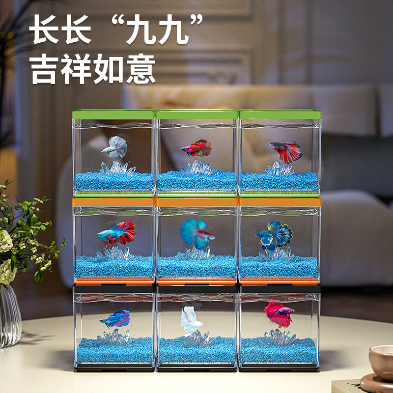 2026年全新推出的斗鱼缸客厅多格造景二合一桌面摆件,专为泰国斗鱼爱好者精心设计。采用高透亚克力材质,搭配简约现代外观,完美融入家居环境。创新多格分区设计,既可实现单鱼独居,也可分隔展示多条斗鱼,避免争斗的同时提升观赏性。内置微型过滤系统,保持水质清澈,搭配LED柔光灯带,凸显斗鱼绚丽色彩。底部集成生态造景层,可种植迷你水草或布置沉木、岩石,营造自然栖息氛围。小巧不占地,适合客厅、书房或办公桌摆放,是集美观、实用与生态于一体的现代观赏鱼缸新选择。