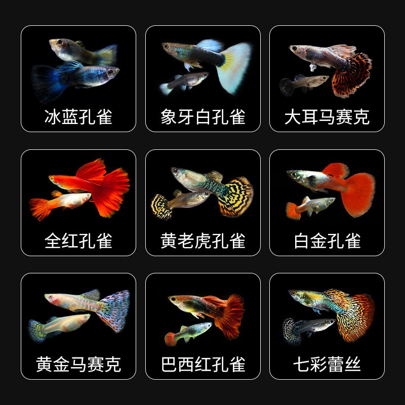 孔雀鱼观赏鱼活体小型热带淡水小鱼凤尾鱼斑马鱼金鱼好养