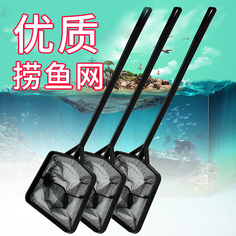 淘鱼缸捞鱼网鱼捞水族清洁抄网兜鱼捞小号大号加大方形手抄鱼网黑色
