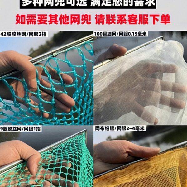 双圈内圈不锈钢抄网手工编织九股线密眼鱼捞木把抄网长柄渔具网兜