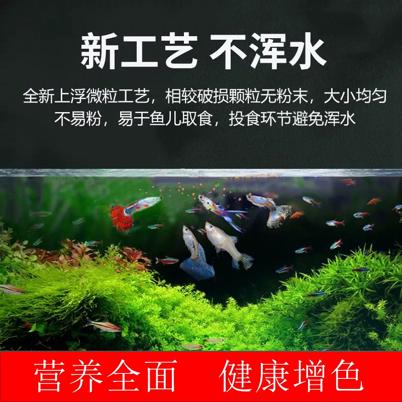 淘海豚牌热带鱼饲料孔雀鱼鱼粮小型微粒观赏鱼凤尾鱼燕鱼鱼食小颗粒