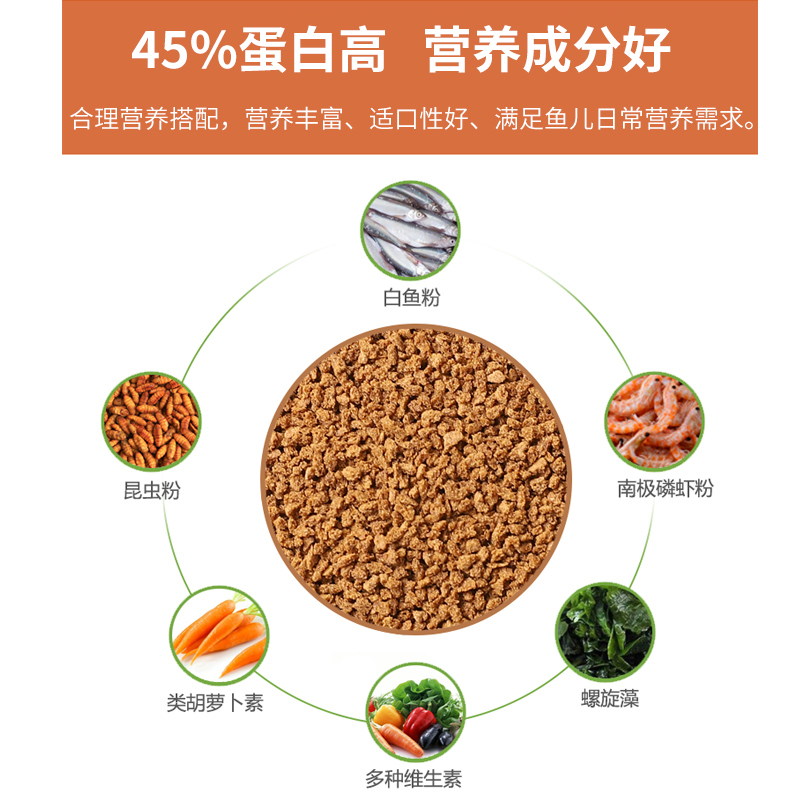 淘通用型观赏鱼粮食锦鲤鱼饲料高蛋白上浮小型热带草金鱼专用小颗粒
