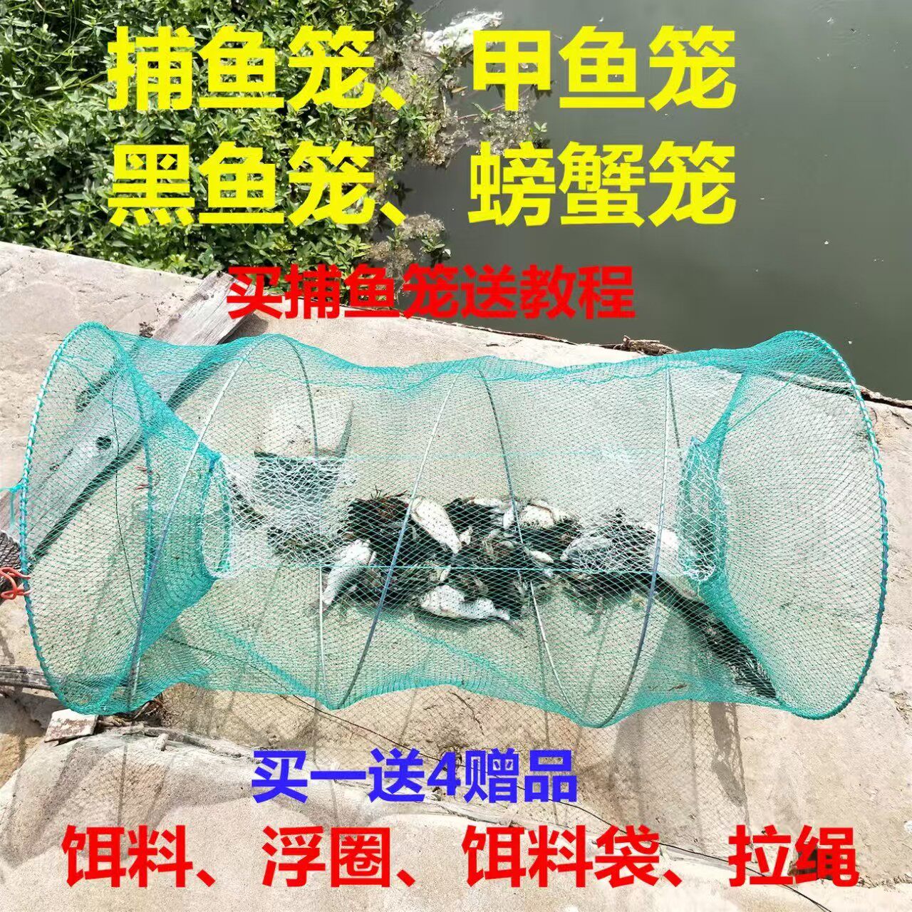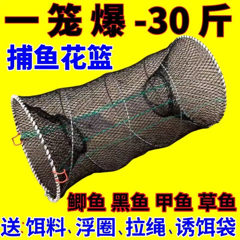 淘宝捕鱼花篮可折叠弹簧笼抓渔笼渔网捕鱼笼鲫鱼黑鱼鲤鱼甲鱼草鱼龙虾