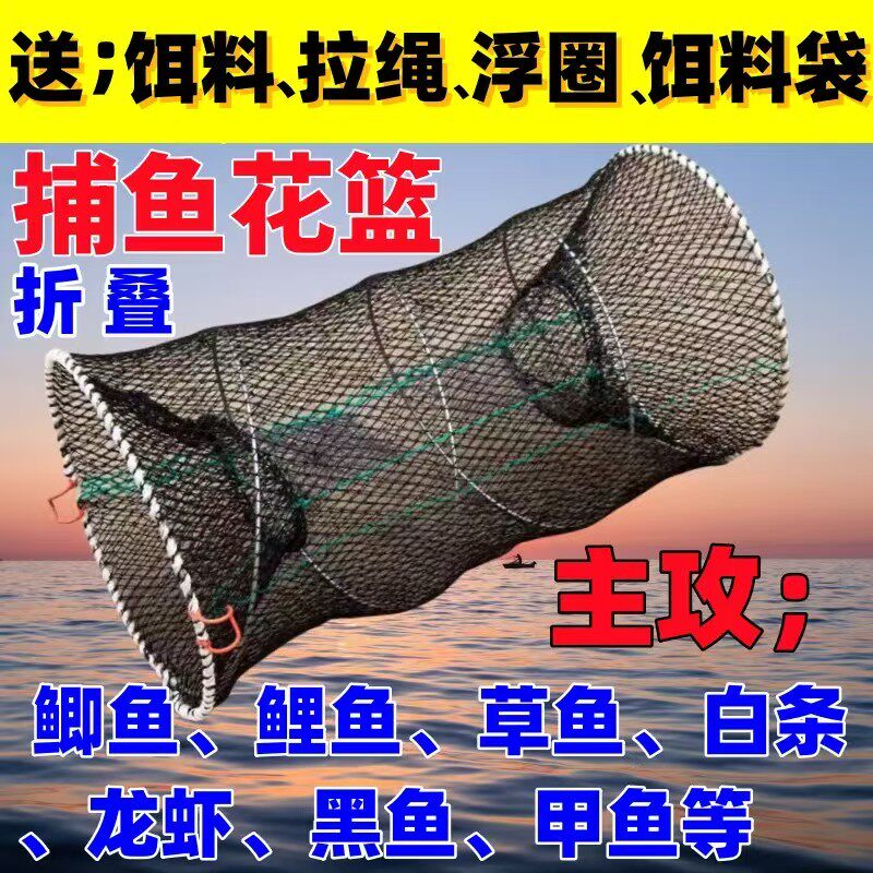 捕鱼花篮是一种高效、便携的可折叠弹簧笼式渔具,适用于捕捞鲫鱼、黑鱼、鲤鱼、草鱼、甲鱼及龙虾等多种淡水水产。其采用高强度弹簧钢架结构,外覆耐用网布,轻便结实,不用时可折叠收纳,便于携带和存放。投放时只需打开笼体,放入饵料,置于水底或缓流处,利用鱼类趋食性诱其入笼,入口设计防逃,捕获率高。适用于河流、湖泊、池塘等水域,是休闲垂钓和小型捕捞的理想工具。操作简单,无需电力,环保安全,深受渔友喜爱。